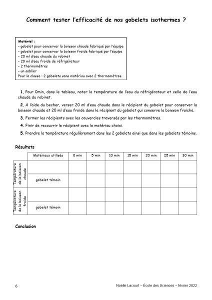 Le travail sur les gobelets isothermes a été élaboré par le groupe sciences 63